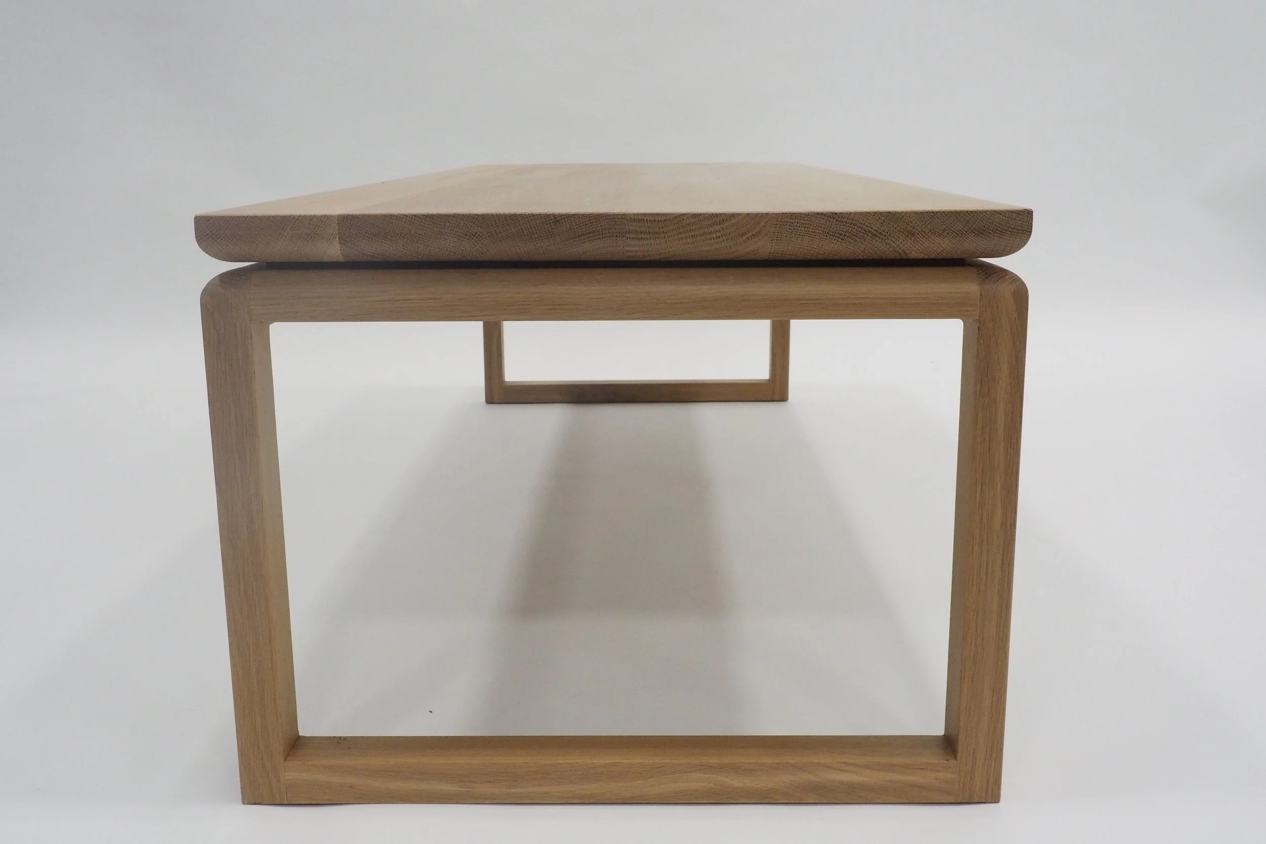 The Simply stylish Solid American Oak Coffee table brings warmth to the room with it’s curved edges and floating top. This Design started with an idea of having a coffee table that is classic with a modern twist. A limited number of these will be available to purchese.