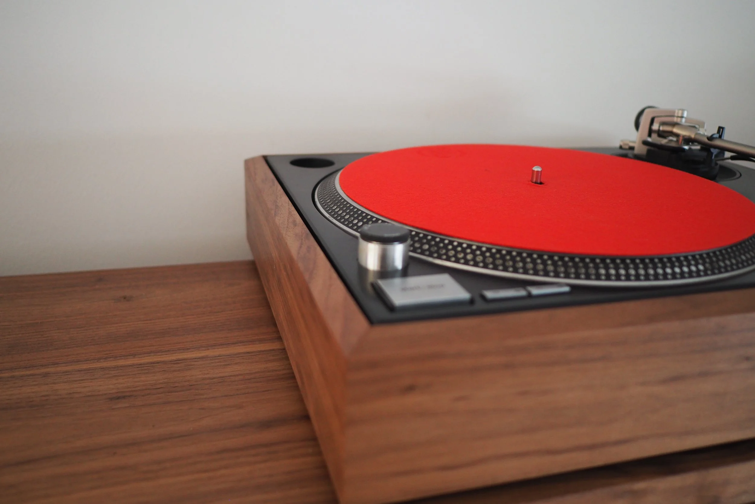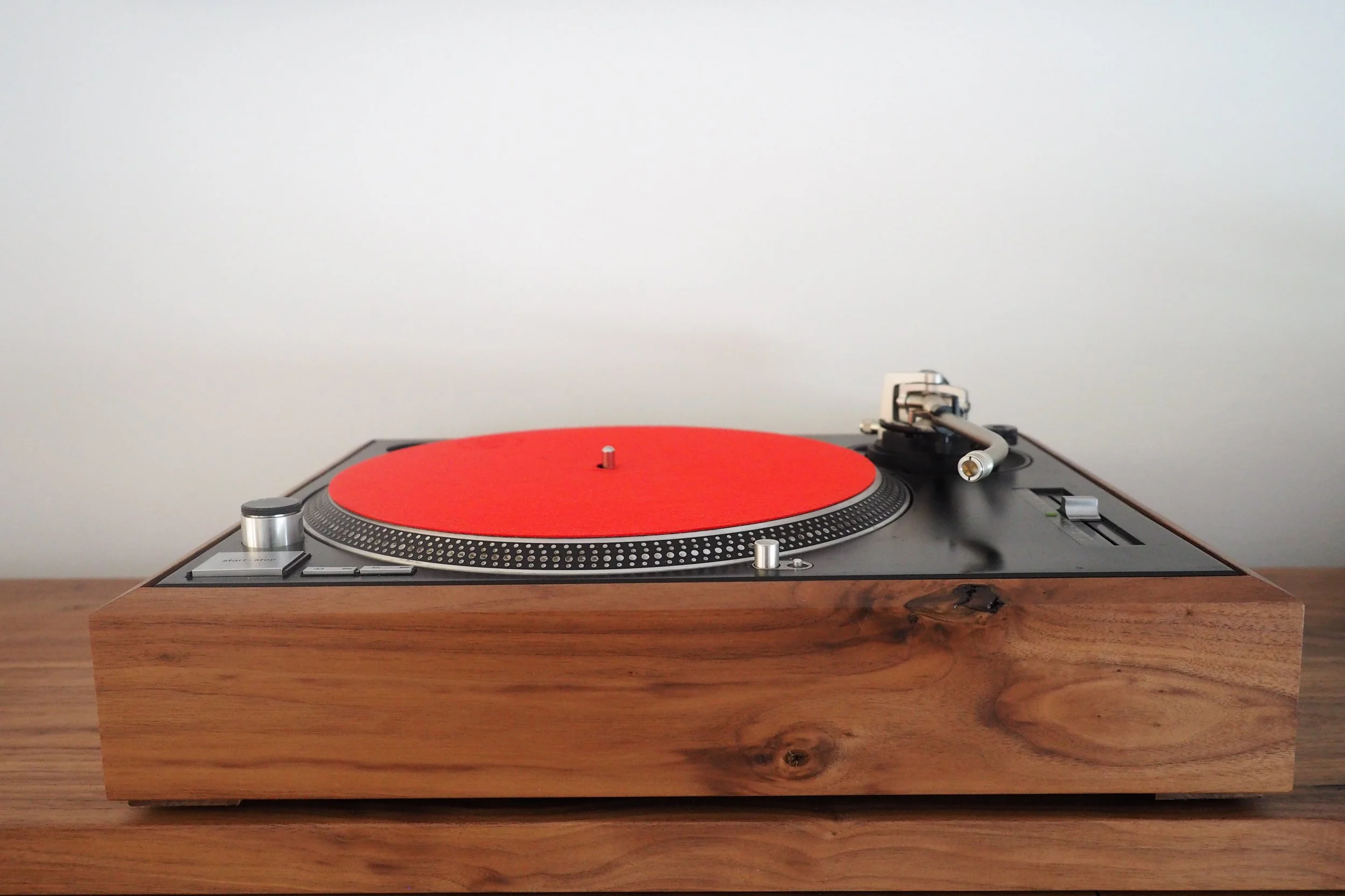The Walnut Technics 1200 Coffin is Made to protect and style you're turntable. With its unique timber grain and its beveled edge makes this a very special design. The Coffin has a 2.5mm gap all the way around to allow for a dust cover. The coffin comes in a range of different solid timbers such as American Oak, Messmate, Blackbutt and Tasmanian Oak.